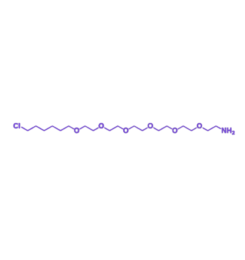 该化合物的结构设计具有多重功能性:PEG 主链通过提升整体分子水溶性优化体系分散性,C6 氯代烷基片段提供可控亲脂性与键合活性,而末端NH₂ 端基则支持与酸、醛、NHS 酯、异硫氰酸酯等多种官能团的偶联反应,实现高度灵活的化学修饰。PEG6 链段长度适中,可引入柔性间隔距离,避免反应位点空间拥挤,显著增强后续接枝基团的反应效率。