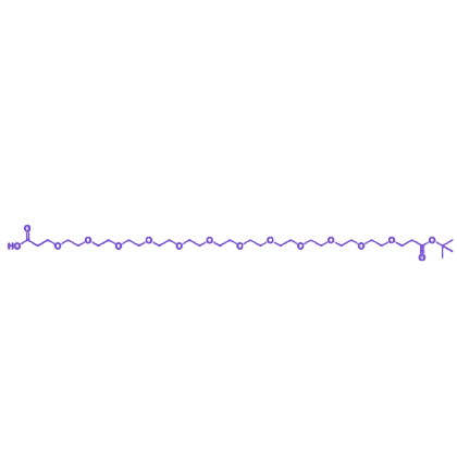 分子结构与核心特性:该化合物由羧基(-COOH)、聚乙二醇12(PEG12)间隔臂及叔丁酯(-COOtBu)构成。聚乙二醇12间隔臂含12个氧乙烯单元,分子长度约39 Å,相比短链PEG,其亲水性与空间缓冲能力显著增强,可有效减少修饰后分子的非特异性吸附,并为多肽、酶等生物大分子提供充足构象自由度,避免活性位点遮挡。双端基团具备可控差异化修饰能力:羧基端可在EDC/NHS等偶联剂辅助下,直接与氨基(-NH₂)或羟基(-OH)发生酰胺化、酯化反应,反应效率较高;叔丁酯端需在三氟乙酸等酸性条件下脱保护生成羧基,脱保护效率>98%,实现“先单端修饰、后双端活化”的分步调控,从根本上避免双羧基同时反应导致的交联团聚问题。