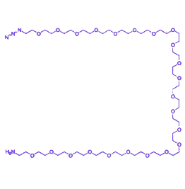 该化合物的核心结构特征为 异双功能基团修饰,一端为叠氮基(-N3),另一端为氨基(-NH2),中间通过 二十三聚乙二醇链段(PEG23)连接,形成线性分子结构。其功能机制基于双官能团的化学反应特性:叠氮基可通过点击化学反应(如 CuAAC)实现高效共价连接,氨基则能与羧基、活性酯等基团发生缩合反应,从而构建多元分子偶联体系。PEG 链段的引入赋予产物 亲水性增强、生物毒性降低及免疫原性减弱等特性,可有效优化偶联物的药代动力学行为与材料界面性能。