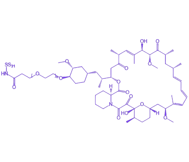 PEG作为连接臂,在分子结构中发挥多重调节作用:一方面显著改善整体分子的水溶性,提升制剂稳定性;另一方面通过减少生物体内的免疫原性,有效延长药物循环时间,优化体内代谢过程。PEG的引入解决了雷帕霉素原有的药代动力学缺陷,为其临床应用突破提供了重要支持。