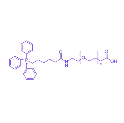 TPP-PEG-COOH(三苯基膦-聚乙二醇-羧基)是一种具有多功能基团的线性杂化分子,通过共价键将疏水性三苯基膦(TPP)与亲水性聚乙二醇(PEG)链段及末端羧基(COOH)进行精准偶联。该化合物兼具靶向识别与生物相容性双重特性,为生物医学领域的精准递送系统设计提供了高效分子工具。 该分子通过三苯基膦基团与聚乙二醇链的稳定连接,形成具有明确拓扑结构的 amphiphilic 嵌段分子。其独特的 双亲性结构 赋予材料优异的水分散性与细胞膜穿透能力,其中三苯基膦作为线粒体靶向基团可特异性富集于高膜电位细胞器,而末端羧基则为后续生物分子偶联(如蛋白、多肽或药物分子)提供活性位点。在物化性质方面,该化合物表现出良好的化学稳定性与可调控的分子量分布,通过改变聚乙二醇链长可灵活调节其亲疏水平衡及生物半衰期。在应用层面,其在线粒体靶向药物递送、亚细胞水平成像探针及生物共轭材料制备中展现出显著优势,尤其适用于需跨越细胞膜屏障的精准治疗体系构建。