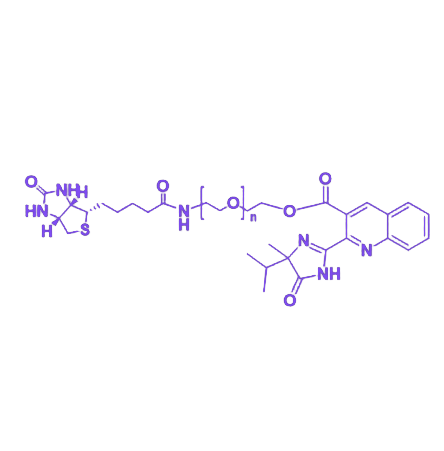 Biotin-PEG-Imazaquin(生物素-聚乙二醇-咪唑喹啉)是一种由生物素靶向单元、聚乙二醇链段与咪唑喹啉功能分子通过化学偶联形成的多功能生物活性探针。该分子设计整合了靶向识别、亲水性调节与生物活性激发等多重特性,为生物医学研究提供了高效的分子工具。