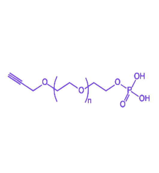 该分子结构中,炔基作为点击化学(Click Chemistry)的典型反应基团,可与叠氮化合物发生高效、高选择性的1,3-偶极环加成反应,实现分子间的精准连接;磷酸基团则赋予材料优异的表面吸附性能与生物矿化能力,可通过静电相互作用或配位键合修饰金属表面、羟基磷灰石等无机材料。PEG链段的引入有效改善了分子的水溶性与空间位阻效应,降低了非特异性相互作用,同时其分子量可根据需求进行调控,以适配不同应用场景的空间需求。在生物医学领域,该化合物可用于制备 stimuli-responsive药物递送系统、生物活性涂层材料及生物传感器探针,为疾病诊断与治疗提供创新型分子工具。