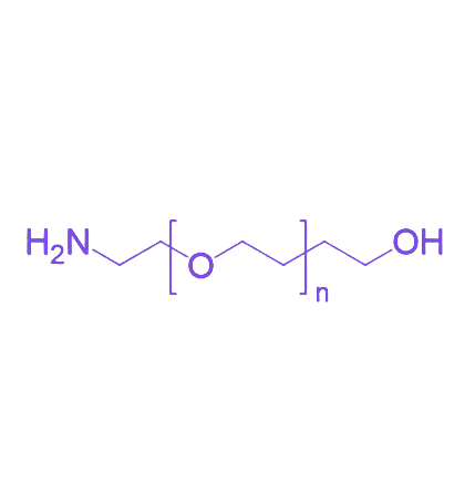 NH₂-PEG-OH(氨基-聚乙二醇-羟基)是一种具有双官能团修饰的线性聚乙二醇衍生物,其分子两端分别携带有反应活性氨基(-NH₂)与亲水性羟基(-OH),在生物医学材料、药物递送系统及纳米技术领域具有广泛的应用潜力。该产品通过精确控制分子量分布与官能团修饰度,可满足不同场景下的生物偶联与材料改性需求。 该化合物的分子结构由重复的乙二醇单元(-O-CH₂-CH₂-)构成柔性主链,一端为可参与酰胺化、Michael加成等反应的伯胺基团,另一端为羟基末端,这种结构设计赋予其独特的化学通用性与生物相容性。在物化性质方面,NH₂-PEG-OH具有良好的水溶性与有机溶剂兼容性,在生理条件下表现出低免疫原性与蛋白非特异性吸附特性,可通过调节聚乙二醇链段长度(分子量范围通常覆盖500-20000 Da)实现对材料亲疏水性、空间位阻及降解速率的精准调控。其核心应用价值体现在作为生物分子偶联桥联剂,可介导药物分子、多肽、抗体或纳米颗粒的表面功能化,通过氨基与羧基、醛基等基团的特异性反应构建稳定的生物缀合物,同时聚乙二醇链段能有效提升修饰后复合物的循环半衰期与体内稳定性。此外,在组织工程领域,该衍生物可用于调控聚合物支架的表面活性与细胞相容性,为生物材料界面工程提供关键的分子设计工具。