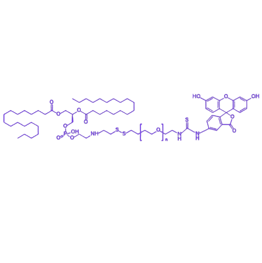 | 别称: | 磷脂-双硫键-聚乙二醇-异硫氰酸荧光素 | ||