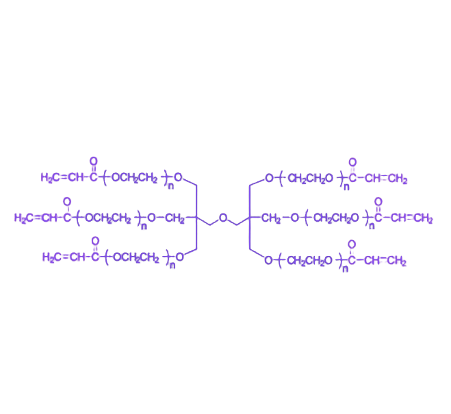 6-Arm PEG-AA 是以星形支化结构为核心的可聚合聚乙二醇衍生物,中心连接核通过醚键延伸出6条PEG链,每条链末端共价结合丙烯酸酯(-OOC-CH=CH₂)基团,兼具多臂结构的高密度交联优势与丙烯酸酯的易聚合特性,是一类兼具可聚合性与生物相容性的关键功能材料。