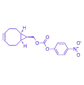 BCN 基团赋予化合物优异的 无铜点击化学反应特性,其反应过程无需铜催化剂参与,不仅简化了操作流程,更显著降低了对生物体系的潜在毒性及干扰风险,确保反应在温和条件下高效、特异性进行。活性酯(PNB)结构则提供了便捷的胺基偶联位点,能够与含伯胺或仲胺基团的生物分子(如蛋白质、多肽、抗体等)或其他有机化合物快速反应,形成稳定的酰胺键连接,从而实现对目标分子的精准标记、功能修饰或多组分连接。