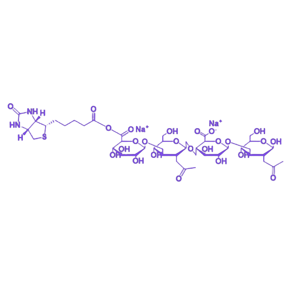 生物素修饰透明质酸(Biotin-HA)是通过化学修饰将生物素分子共价连接于透明质酸骨架的功能性多糖衍生物,兼具透明质酸的生物相容性与生物素的高亲和识别特性,在生物医学领域展现出靶向递送、生物检测、细胞成像及组织工程等多场景应用潜力。 透明质酸作为天然线性多糖,由D-葡萄糖醛酸与N-乙酰葡糖胺通过糖苷键交替连接而成,其分子链富含羟基、羧基等极性基团,可通过氢键作用结合大量水分子,具备优异的保湿性能与生物相容性。生物素(维生素B7)为含脲环与噻吩环的小分子化合物,能与链霉亲和素发生特异性非共价结合,形成解离常数达10⁻¹⁵ mol/L的稳定复合物,该相互作用具有高选择性、高亲和力及可逆性调控特点。 Biotin-HA的制备基于透明质酸分子的化学修饰,通过活化透明质酸的羧基或羟基基团,与生物素分子的伯氨基发生酰胺化或酯化反应,实现生物素分子在多糖链上的定点或随机接枝,修饰度可通过调节反应摩尔比进行精准调控。产物保留了透明质酸的天然骨架结构,同时引入生物素的特异性识别位点,可通过链霉亲和素-生物素系统构建多功能生物偶联平台。 在靶向化合物递送系统中,Biotin-HA可作为药物载体,通过物理包埋或化学偶联方式负载小分子药物、蛋白质或核酸,利用生物素-链霉亲和素的特异性结合,将药物定向递送至表面修饰链霉亲和素的靶细胞,提高药物在病灶部位的富集效率,降低对正常组织的毒副作用。生物检测领域中,Biotin-HA可作为标记探针,通过末端生物素基团与链霉亲和素标记的检测试剂(如酶、荧光分子或胶体金)结合,构建高灵敏度的生物传感器,用于抗原抗体反应、核酸杂交等生物分子的定性与定量分析。 细胞成像研究中,将荧光染料标记的链霉亲和素与Biotin-HA预孵育,形成荧光标记的多糖复合物,通过透明质酸与细胞表面受体(如CD44)的特异性结合,实现活细胞动态追踪与亚细胞结构定位,成像分辨率可达纳米级别。组织工程应用方面,Biotin-HA可作为细胞外基质模拟物,通过调节分子量与修饰度调控水凝胶的力学性能与降解速率,为细胞黏附、增殖与分化提供适宜的微环境,同时借助生物素-链霉亲和素系统固定生长因子或细胞黏附肽,进一步优化支架材料的生物学功能。 该衍生物的化学稳定性与生物安全性已通过体外细胞毒性试验与动物模型验证,修饰过程未引入有毒化学残留,产物在生理条件下可通过透明质酸酶降解为天然代谢产物,具有良好的生物可降解性与低免疫原性,为其在临床转化研究中的应用奠定了基础。