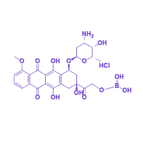 硼酸-阿霉素(Boric acid-DOX)是通过特定化学方法将硼酸与阿霉素精准偶联形成的复合物,其外观通常为固体粉末状,具体形态如颗粒粗细、色泽深浅等可能因制备工艺不同而存在细微差异。该复合物巧妙融合硼酸与阿霉素的核心特性,在医药化学领域展现出独特的应用潜力。 化学结构与稳定性增强:硼酸的引入通过化学键合作用优化阿霉素的分子结构,显著提升其在存储和使用过程中的结构稳定性,有效减少因光照、温度等外界因素导致的降解反应,延长药物有效期。 溶解性能改善:借助硼酸的化学特性,该复合物在特定溶剂体系中的溶解分散性得到改善,能够实现更均匀的溶液状态,有助于提高药物在生物体内的吸收效率和药效发挥。 靶向递送潜力:硼酸基团赋予复合物潜在的靶向识别能力,可与生物体内特定细胞或组织表面的受体或靶点结合,理论上能够提升药物在病灶部位的富集浓度,降低对正常组织的毒副作用,为精准治疗提供可能。