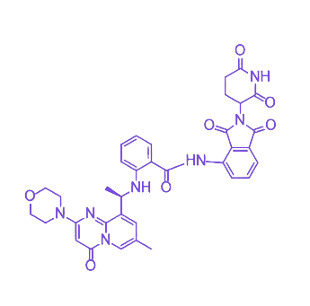 泊马度胺作为一种已获批用于多发性骨髓瘤等疾病的 免疫调节化合物,其核心药理作用包括调节免疫系统功能、抑制 血管生成 及直接抑制 肿瘤细胞增殖。AZD6482 则是一种拥有特定作用靶点的化合物,其作用机制可能涉及对关键信号通路的精准调控,从而进一步增强对疾病进程的干预能力。通过偶联设计,AZD6482-Pomalidomide 期望实现两种活性成分的协同效应,既保留各自的优势药理作用,又可能通过分子结构优化减少单一成分的局限性,为临床治疗提供更具潜力的候选药物。