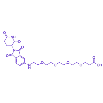 Thalidomide-NH-PEG4-COOH 是一种以 沙利度胺(Thalidomide)为核心骨架,通过氨基连接 四单元聚乙二醇(PEG4)链段并末端修饰 羧基(-COOH)的功能化小分子。其设计整合了沙利度胺的结构特征、PEG4 的柔性亲水特性及羧基的化学活性,在生物化学与材料科学领域具有广泛应用潜力,已成为分子偶联与功能化研究的重要工具分子。