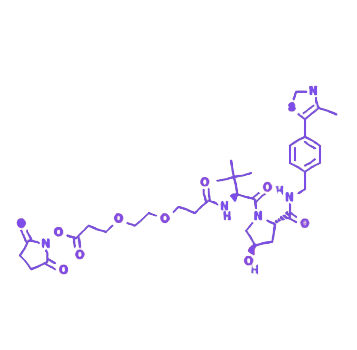 (S,R,S)-AHPC-PEG2-NHS(CAS号:2010159-45-0)是一种专为靶向蛋白降解技术开发的合成PROTAC连接物,其分子结构整合了基于(S,R,S)-AHPC的VHL配体、2单元PEG间隔臂及末端NHS酯基团,可通过模块化设计连接不同靶蛋白配体,实现特定蛋白质的选择性降解,在肿瘤治疗及信号通路研究中具有重要应用价值。