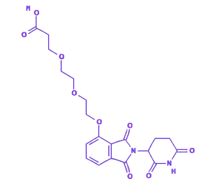 Thalidomide-O-PEG2-Acid 是沙利度胺的一种羟基衍生物,通过在母核羟基位点引入含 2 个乙二醇单元的 PEG2 链,并在末端修饰羧酸官能团形成。PEG2 链的引入赋予分子空间柔性,改善水溶性和偶联反应操作性,末端羧酸可与胺类或羟基分子通过酰胺化、酯化或点击化学反应形成稳定共价键,使其成为 PROTAC 分子设计、药物偶联物、分子探针及功能性高分子材料修饰的理想模块。
