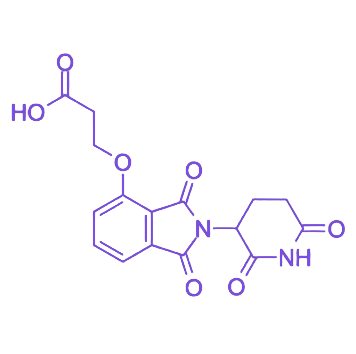 在应用场景中,Thalidomide-O-C2-acid 表现出多领域适配性:在 PROTAC 分子设计中,常作为连接 E3 泛素连接酶配体的核心结构单元,提供与连接子(Linker)及靶向配体的精准偶联位点,其短链设计有助于优化最终分子的亲水性、药代动力学特性及三维构象,提升 PROTAC 分子的靶向降解效率。此外,该化合物还广泛用于高分子材料或药物载体的修饰,通过引入羧基活性基团,可显著提升分子探针或递送体系的稳定性与靶向特异性。其结构清晰、合成路径简便、修饰位点明确的特点,进一步巩固了其在化学生物学研究和创新药物开发中的核心应用价值。