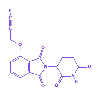 分子结构上,沙利度胺母核作为生物学功能核心,可高度特异性结合 E3 泛素连接酶家族中的 CRBN(cereblon)蛋白,这是其作为 PROTAC 分子“E3 连接酶配体”的关键基础;末端丙炔基提供特异的点击化学反应活性,含有的碳-碳三键可与叠氮基(-N₃)发生准确偶联,且自身结构小巧,几乎不影响沙利度胺母核与 CRBN 的结合构象,为后续功能化修饰提供“微创”反应位点。