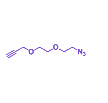 Propargyl-PEG2-N3(炔丙基-聚乙二醇2-叠氮)是一种具有双功能特性的点击化学桥梁分子,其分子结构由炔丙基端(-C≡CH)、二聚乙二醇链段(PEG2)和叠氮基团端(-N₃)组成,可通过高效的环加成反应实现分子间的定点偶联,同时兼具水溶性与生物相容性。 核心结构与反应特性:分子两端分别修饰炔丙基与叠氮基团,其中炔丙基作为点击化学反应的活性位点,可与叠氮基团在铜催化或无铜条件下发生[3+2]环加成反应,形成稳定的1,2,3-三唑环结构,该反应具有高选择性、高产率及温和反应条件等特点。中间连接链段为二聚乙二醇(PEG2),由2个乙二醇单元(-O-CH₂-CH₂-)组成,其亲水性链段可显著提升分子的水溶性和生物相容性,有效减少非特异性吸附,并降低在生物体系中的免疫原性。 功能与应用价值:作为双功能连接剂,该化合物可作为分子桥梁实现不同物质的高效偶联,例如在生物分子标记、药物递送系统构建、材料表面功能化等领域中,通过炔基与叠氮基的特异性反应,将目标分子(如蛋白质、核酸、药物分子等)与载体或标记物精准连接,其PEG链段的引入同时确保了偶联产物在水相环境中的稳定性和生物兼容性,是化学合成与生物医学研究中的重要工具分子。