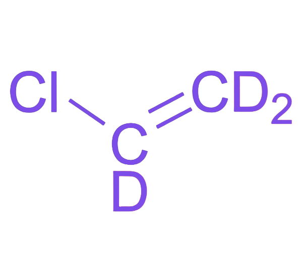 在聚合反应化学与工艺优化领域,VCM-d₃的示踪功能至关重要。PVC工业生产中,向单体的链转移是控制分子量和产生支化结构的关键步骤,直接影响最终产品的加工性能和热稳定性。使用VCM-d₃进行模型聚合研究,结合高分辨NMR和先进质谱技术,能够清晰区分并定量分析由链转移反应产生的各种含氘端基(如-CH₂CDCl-)和支化结构,从而准确评估不同工艺条件(温度、引发剂、添加剂)对这些复杂反应的影响,为优化聚合配方和工艺、生产高性能PVC树脂提供分子层面的指导。此外,该产品在环境毒理学研究中可作为安全示踪剂。