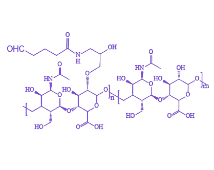 HA-Aldehyde 是天然透明质酸经化学修饰引入醛基官能团后的衍生物,其在保留透明质酸原有生物相容性、保水性及润滑性的基础上,通过醛基的化学反应活性实现与其他生物分子的共价偶联,在生物医学领域具有重要应用价值。 透明质酸作为生物体内天然存在的多糖,具备优良的生物相容性、保水性和润滑性,是生物材料研发的理想基材。HA-Aldehyde 通过对透明质酸进行醛基化修饰,在保留上述天然特性的同时,引入了醛基官能团这一关键活性位点,赋予材料化学反应活性。 醛基作为活泼官能团,可与含氨基、羟基等基团的物质发生特异性反应,例如与蛋白质、多肽、壳聚糖等生物大分子中的氨基发生席夫碱反应,从而实现 HA-Aldehyde 与其他生物分子的共价偶联,为构建多功能生物材料提供核心技术支撑。 该修饰特性使 HA-Aldehyde 在生物医学领域展现出广泛应用前景,可用于组织工程支架、药物递送系统等关键领域。同时,修饰后的 HA-Aldehyde 在维持水凝胶结构稳定性、精准调控材料降解速率等方面表现出显著优势,为生物材料的性能优化提供了新的解决方案。