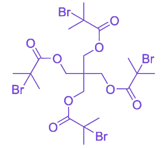 Pentaerythritol tetrakis(2-bromoisobutyrate)(PET-Br4)是一种基于季戊四醇骨架的四官能团ATRP引发剂,其分子结构中含有四个高反应性的α-溴代异丁酸酯引发基团,呈高度对称的星形分布,适用于合成结构明确、分子量可控的四臂星形聚合物、高度支化材料及交联网络。
