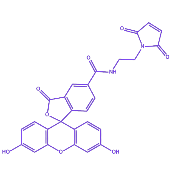 该试剂的核心优势在于双重功能基团的协同作用:5-羧基荧光素 赋予其优异的荧光发射性能,确保标记后生物分子在各类光学检测系统中具备高灵敏度信号输出;马来酰亚胺 基团则提供对含巯基生物分子(如半胱氨酸残基)的专一性共价结合能力,实现靶向标记效率的最大化,且反应条件温和,可有效保留生物分子天然构象与活性。