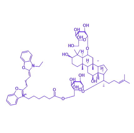 该化合物通过精准的化学连接方式确保结构稳定性,荧光标记不干扰母体分子的生物靶向性,适用于活细胞成像、药物递送路径追踪、受体结合动力学等研究场景,为探索人参皂苷 Rg1 的体内外作用机制提供直观的可视化工具。