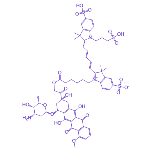 SulfoCy5-DOX 是由磺化Cy5荧光基团阿霉素(DOX)通过化学连接形成的功能性化合物,兼具优良的荧光性能与药物活性,适用于生物成像及药物示踪研究。