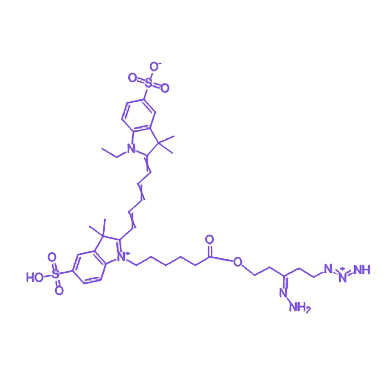 Cy5-hydrN3(亦称作Cy5-N3或Cyanine5 azide)是一类由Cy5荧光染料叠氮基团(-N3)共价偶联形成的功能性分子探针,兼具荧光成像与生物偶联双重特性。其核心优势在于Cy5染料的光学性能与叠氮基团的化学反应活性的协同作用,可广泛应用于生物分子标记与可视化研究。