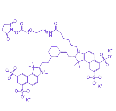 别称: 活性酯-聚乙二醇-磺化菁染料Cy7