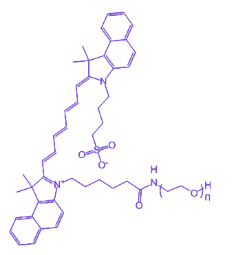 ICG-PEG是通过化学偶联技术将吲哚菁绿(ICG)与聚乙二醇(PEG)结合形成的功能性复合物,兼具近红外荧光成像性能与生物相容性优化特性,在生物医学成像领域具有重要应用价值。