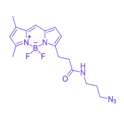 在应用性能方面,BDP FL-N3 表现出良好的 细胞膜透过性化学稳定性,适用于活细胞成像、蛋白质定位及药物传递机制研究。叠氮基团可与多种炔基化修饰的生物分子(如蛋白质、核酸、糖类)快速偶联,实现特异性 生物正交标记,简化复杂化学修饰步骤。此外,该探针衍生化潜力强,可通过进一步修饰调节水溶性、电荷状态或赋予靶向功能,满足科研及诊断试剂开发的多样化需求,在单分子检测、超分辨显微成像及高通量筛选中具有重要应用价值。
