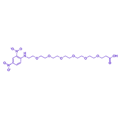 该分子常用于构建DNP修饰的蛋白、纳米颗粒或聚合物表面,以研究抗-DNP抗体的特异性结合机制。在免疫检测中,其结构特性有助于提高检测的特异性与灵敏度;在信号放大系统中可作为关键连接单元增强信号传导效率;在靶向载体修饰中,PEG6链段的亲水性与空间位阻效应能优化载体的体内循环特性。此外,在药物递送领域,DNP基团的抗体识别功能与PEG6提供的分子间距可避免标记分子间的空间干扰,为靶向药物递送系统设计提供支持;在生物探针开发中,其多功能结构有助于实现对生物分子的精准标记与检测。