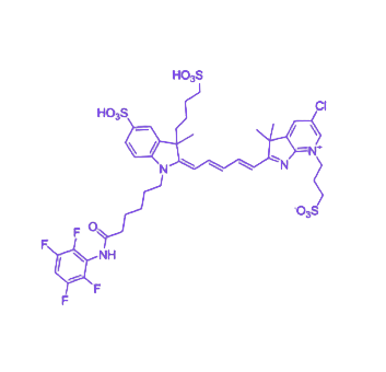 该试剂分子量约 834.90 g/mol,纯度≥95%,通过 TFP 酯基团 与生物分子的伯氨基发生特异性反应,相较于传统 NHS 酯,TFP 酯反应活性更高,在中性至弱酸性 pH(6.0-8.0)下即可反应,且不易水解。其荧光激发波长约 678 nm,发射波长 700 nm,处于生物组织自发荧光极低的 近红外区域,可穿透深层组织,信噪比明显优于可见光染料。