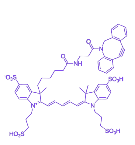 在应用场景中,该产品可广泛用于生物分子标记、细胞膜糖类成像、蛋白质修饰、药物递送载体功能化及纳米材料表面改性。通过与叠氮修饰的多肽、核酸或聚合物偶联,能够构建功能化探针用于细胞追踪、受体定位及分子诊断;其近红外荧光信号的深层组织穿透能力和高信噪比特性,使其在体内生物成像研究中具备显著优势。相较于传统NHS或马来酰亚胺偶联体系,该探针以无催化剂、反应条件温和、无金属残留等特点,为活细胞成像及原位标记提供了更优选择。