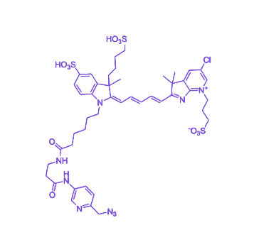 在应用场景中,该探针适用于炔基修饰生物分子的特异性标记,尤其在代谢标记、活体成像等研究领域展现出独特优势,标记后需通过透析或凝胶过滤等方法去除游离探针,以保证实验结果的准确性。储存条件方面,固体状态需密封避光并置于-20℃干燥环境,溶液状态则应分装后-80℃冻存,避免反复冻融超过3次。作为科研级试剂,其综合性能使其成为生物医学研究中点击化学荧光标记的优选工具。