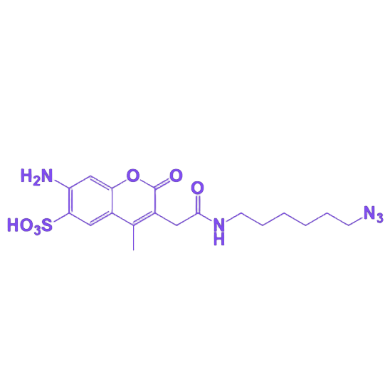 其末端的叠氮基(N3)赋予生物正交反应活性,可参与铜催化的叠氮-炔基环加成反应(CuAAC)或无铜点击化学反应(SPAAC),与含炔基、环张力炔基(如 DBCO)的生物分子实现特异性偶联。此类反应可在生理条件下温和进行,不会破坏生物分子的天然结构与功能,能够实现对蛋白质、多肽、核酸等生物分子的准确荧光标记,为生物医学研究提供有力支持。