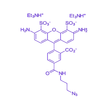 该试剂的化学名称为AF488-N3,对应的CAS登记号为1679326-36-3,其分子式为C₃₆H₅₆N₈O₁₀S₂,精确分子量为825.01。在物理性状方面,AF488-N3呈现为橙色固体形态,具有良好的溶解性能,可溶于大部分有机溶剂及水,这一特性为实验操作提供了便利。