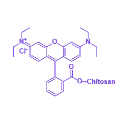 CS-RB通常指铷(Rubidium,Rb)元素与载体结合形成的复合物,在生物医药领域可能作为化合物或前体被研究开发,其性质和功能随载体类型而变化。壳聚糖-罗丹明 B作为一种功能性材料,通过特定方式将天然多糖壳聚糖与强荧光有机染料罗丹明 B结合,兼具两者核心特性与协同功能。 壳聚糖作为天然多糖,具有优异的生物相容性和生物可降解性,分子结构中的氨基和羟基赋予其良好的化学修饰潜力,可通过共价键、静电作用等方式与其他分子结合。罗丹明 B则是一种典型的荧光染料,其独特的化学结构使其在特定波长激发下能发出强烈且稳定的橙红色荧光,这一特性使其在生物成像、荧光标记等领域具有重要应用价值。 壳聚糖-罗丹明 B复合物通过将壳聚糖的生物相容性与罗丹明 B的荧光特性相结合,可能在生物医药领域展现多方面应用潜力。例如,利用壳聚糖的靶向修饰能力实现罗丹明 B的精准递送,或通过荧光信号追踪复合物在生物体内的代谢过程,为疾病诊断、药物递送等研究提供可视化工具。同时,壳聚糖的可降解性有助于减少生物毒性,提升材料的生物安全性。