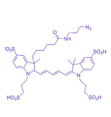 APDyeFluor647-N3 是一种含叠氮(–N3)功能基团的近红外区高性能荧光染料,可通过铜催化叠氮-炔基环加成(CuAAC)或无铜点击化学(SPAAC)与炔基分子实现特异性共价偶联,具备亮度高、光稳定性好的特点,适用于各类分子标记及生物成像实验。