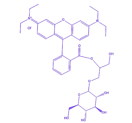 RB-glucosylglycerol 是由罗丹明B与天然糖脂类物质葡萄糖基甘油通过化学偶联形成的荧光标记化合物,兼具葡萄糖基甘油的生物相容性与罗丹明B的荧光示踪功能,适用于生物医学及材料科学领域的研究。