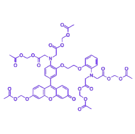 Fluo-8是一种基于氨基聚羧酸类螯合剂的高灵敏度荧光探针,专为检测细胞内游离钙离子(Ca²⁺)浓度变化设计,其乙酰氧甲基酯形式(Fluo-8 AM)可实现活细胞内高效负载与激活,广泛适用于生命科学研究及药物开发领域。细胞内游离钙离子(Ca²⁺) 检测的核心工具,具有高灵敏度 与细胞膜穿透性 ,结合Ca²⁺后荧光强度显著增强,激发波长490 nm,发射波长520 nm,信噪比优于传统Fluo-3/4探针。化学结构以氨基聚羧酸类螯合剂为基础,与Ca²⁺结合解离常数Kd≈370 nM ,属于低亲和力 探针,可精准监测生理范围内的Ca²⁺浓度波动。 采用乙酰氧甲基酯(AM)酯化修饰的Fluo-8 AM ,能通过细胞膜轻松负载至细胞内,经胞内酯酶水解后释放活性探针,实现无损伤活细胞检测。兼容活细胞成像 、流式细胞术 及高通量筛选 等多种技术平台,适用于神经科学领域的突触传递研究、心血管系统钙信号调控分析,以及药物筛选中Ca²⁺通道调节剂的活性评价。