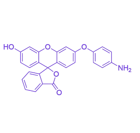 羟基自由基(•OH)作为一类具有极强氧化性的活性氧(ROS),可通过线粒体电子泄漏、炎症反应及金属离子催化的费顿反应等途径产生,能够快速攻击细胞内蛋白质、脂质与DNA,因此实现对其实时、特异的可视化监测在生命科学研究中具有重要价值。APF(Aminophenyl Fluorescein)作为反应型荧光探针,为•OH检测提供了有效工具。该探针本身处于荧光淬灭状态,荧光量子产率极低,当与•OH或次氯酸(HOCl)等强氧化性物质作用时,分子结构发生氧化解封,转变为高荧光态的荧光素(fluorescein)形式,呈现显著的绿色荧光增强(Ex/Em≈490 nm/515 nm),属于典型的“off-on”型荧光探针,具备响应速度快、信噪比高及成像直观的特点。